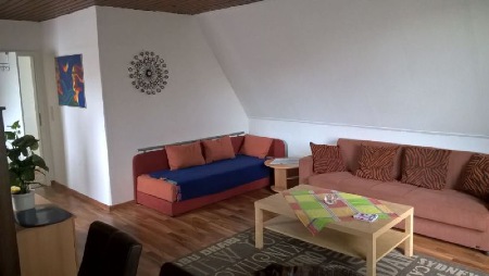 Das Wohnzimmer ist zusätzlich mit einer bequemen Sofagarnitur mit Schlaffunktion ausgerüstet (Liegefläche 140 x 200 cm).